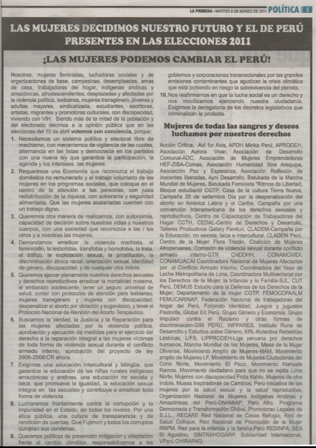 EL ESTADO Y EL CUERPO DE LAS MUJERES Esterilizaciones Forzadas y AOE en el Perú Sandra Ballenas: «Políticas de Población: De las AQV a la AOE». PUCP Rocío Muñoz: Por qué una Convención por los Derechos Sexuales y Derechos Reproductivos». Campaña Convención DDSS/DDRR. Miércoles 01 de Junio 5:45 p.m. Facultad de Ciencias Sociales Auditorio «Raúl…